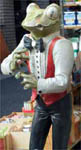 【全国かえる奉賛会】おおお!反喫煙派の仕業であろうかあああ。かえるがたばこ吸っている画期的作品なので、だれか禁煙パイポにしてもいいから、かえしてくれええええ。葉巻きないと、かなしいでしょおおお。復活したら、外で『喫煙場所』のシンボルにして、喫煙派に守ってもらいましょおおお。