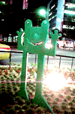 街頭にカエル芸術! 暗夜にそびえるカエルオブジェ!